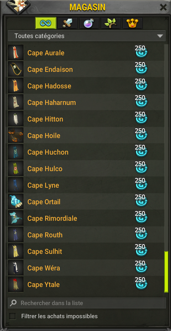 - Les items de classes : Tout est dans le titre ! RDV en .boutique !